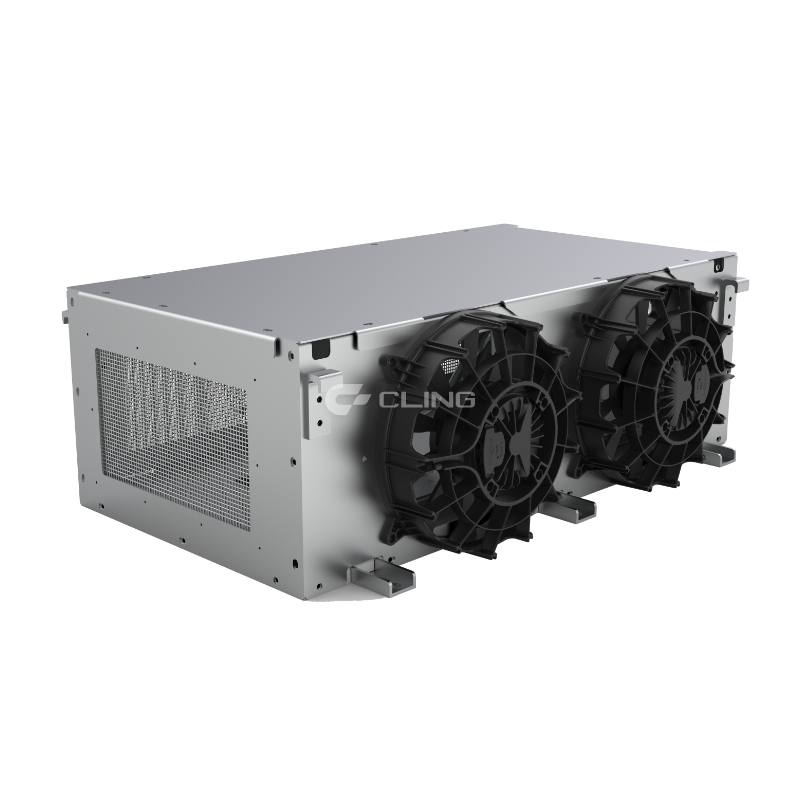 The EFDR series skirt-mounted battery thermal management unit can be flexibly arranged (on chassis or frame) and its height is consistent with that of mainstream batteries. It is applied to various battery swapping/charging heavy-duty trucks, pure electric sanitation vehicles, construction machinery, and more. The unit features an aluminum alloy frame structure for weight reduction and efficiency improvement.It can be optionally equipped with a PTC liquid heater and has standby, cooling, heating, and self-circulation working modes.It uses CAN bus communication, has fault self-diagnosis capabilities, and can upload real-time operating status and fault information.Its EMC meets the requirements of Level III.